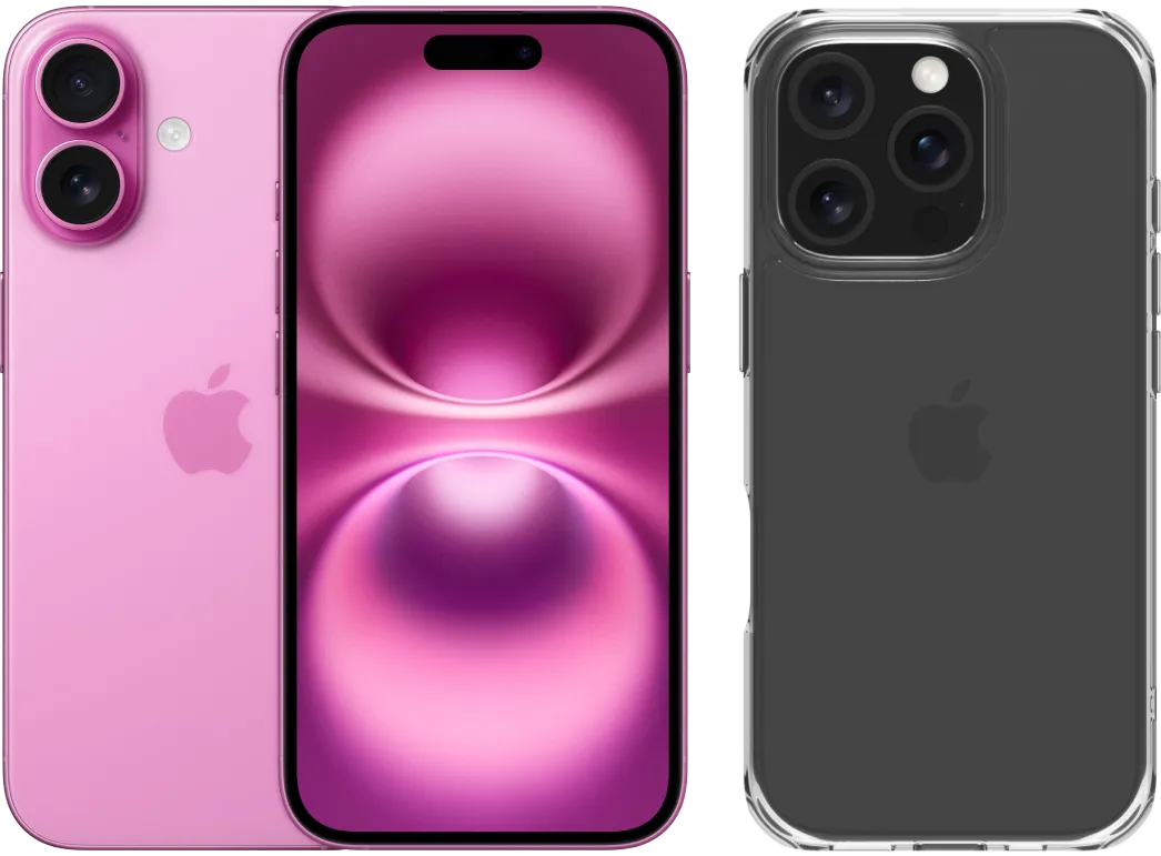 Apple iPhone 16 128GB Roze + BlueBuilt Protective Back Cover Transparant