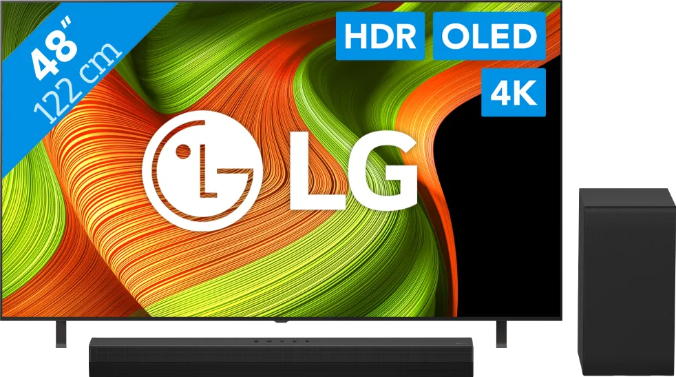 Geniet van verbeterd tv geluid met de LG 48″ OLED B56 4K (2025) + LG DS40T bundel. Televisie Met de LG 48″ OLED B56 4K (2025) ben je zeker van diepe zwartwaarden en realistische kleuren. Het OLED scherm heeft miljoenen pixels die individueel verlichten, dimmen of uitschakelen. Hierdoor zijn zwarte delen van het scherm pikzwart en springen de kleuren van deze 48 inch tv. Een explosie in een donkere filmscène ziet er bijvoorbeeld realistisch uit. Via het webOS smart platform heb je toegang tot streaming services, apps en slimme functies zoals spraakbesturing. Je zet snel een film of serie aan op Netflix. Soundbar Voeg meer bastonen aan je film of muziek toe met de LG DS40T. De meegeleverde subwoofer versterkt bastonen, waardoor je deze harder hoort. De stevige bastonen zorgen voor meer diepte in films, waardoor je ze levendiger ervaart. De soundbar geeft surround sound, waardoor je geluid van verschillende kanten hoort. Hierdoor klinkt de film of serie realistisch.
