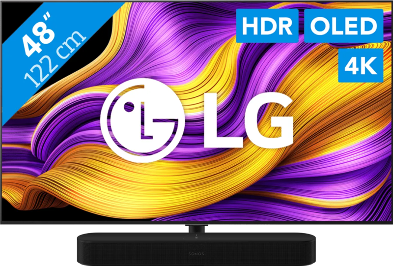 Geniet van realistische beelden en diepe bastonen met de LG 48″ OLED EVO G55 4K (2025) + Sonos Beam Gen2 Zwart bundel. Televisie Met de LG 48″ OLED EVO G55 4K (2025) kijk je naar beelden met de diepste zwartwaarden en levendige kleuren. Het OLED EVO scherm bestaat uit miljoenen pixels die individueel verlichten of dimmen, zonder led achtergrondverlichting. Deze pixels kunnen zelfs helemaal uit, waardoor je écht zwarte beelden ziet. Zo geniet je van een krachtig contrast tussen donkere en lichte delen van het scherm. Lichtbronnen zoals een kampvuur schijnen realistisch, zonder grijze gloed. Door de anti-reflectielaag heb je geen last van storende reflecties op het scherm. Je plaatst de tv gerust in een fel verlichte kamer. Soundbar Met de Sonos Beam Gen2 Zwart geniet je van veel verschillende functies. De soundbar heeft Dolby Atmos. Deze technologie kaatst het geluid via het plafond naar je luisterpositie. Hierdoor lijkt het geluid van alle kanten te komen. Met TruePlay stem je de soundbar af op je woonruimte. Zo klinken films en series nog realistischer. Je voegt de Beam makkelijk toe aan je Sonos multiroom systeem via de Sonos app. Zo luister je in elke kamer naar hetzelfde nummer.