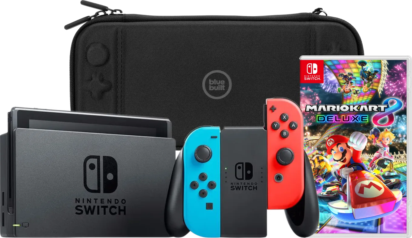 Nintendo Switch Rood/Blauw + Mario Kart 8 Deluxe + BlueBuilt Beschermhoes