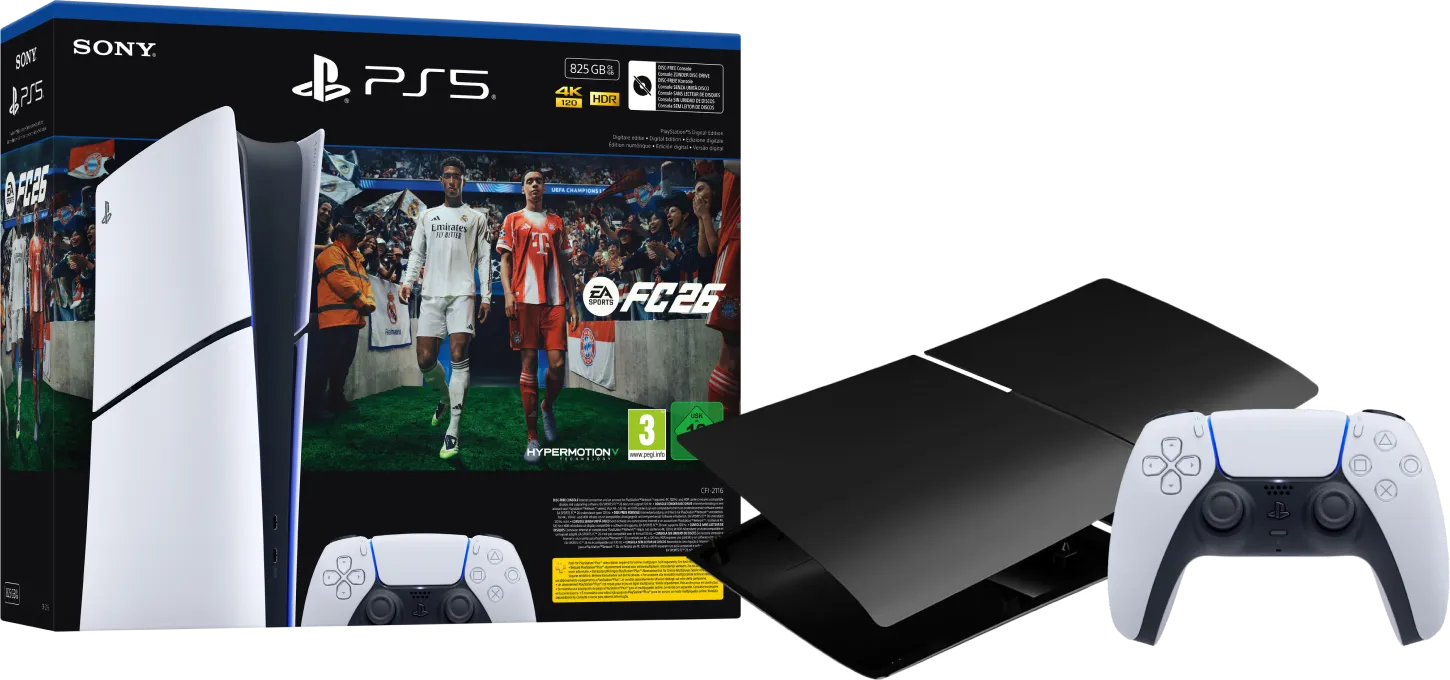 Let op: deze game is een digitale code en je hebt internet nodig om deze te verzilveren. De code krijg je erbij in de doos. Zodra je deze code hebt gebruikt, kun je de producten uit de bundel niet meer retour sturen. Trap jouw digitale voetbalseizoen af in EA Sports FC 26. Daarnaast steek je jouw PlayStation 5 Slim Digital Edition in een nieuw jasje met de zwarte covers van BlueBuilt. Bij deze bundel krijg je een extra witte Sony DualSense controller meegeleverd. Met de PlayStation 5 Slim Digital Edition breng je jouw game ervaring naar een hoger niveau. Deze PlayStation 5 Digital Edition heeft geen cd lade, waardoor je geen games op disc of blu-ray films afspeelt. Wil je dit wel? Dan installeer je gemakkelijk de los verkrijgbare Disc Drive op je Digital Edition. Zo speel je alsnog fysieke games en kijk je ook blu-ray films. De PS5 Slim is 30 procent kleiner dan zijn voorganger. Hierdoor neemt hij minder ruimte in op je bureau of naast je tv. Daarnaast heeft de Slim een opslag van 825 gigabyte. Door de krachtige grafische processor in deze console game je in 4K resolutie met een maximale verversingssnelheid van 120 hertz. De SSD zorgt voor 20 keer snellere laadtijden in games dan op voorgaande PlayStation consoles. Speel je veel RPG of shooter games? Met 3D audio hoor je precies waar je tegenstanders vandaan komen. In-game bestuur jij jouw personage met de meegeleverde DualSense controller. Deze heeft voelbare feedback en trigger effecten, waardoor je niet alleen ziet en hoort, maar ook voelt wat er in je game gebeurt.
