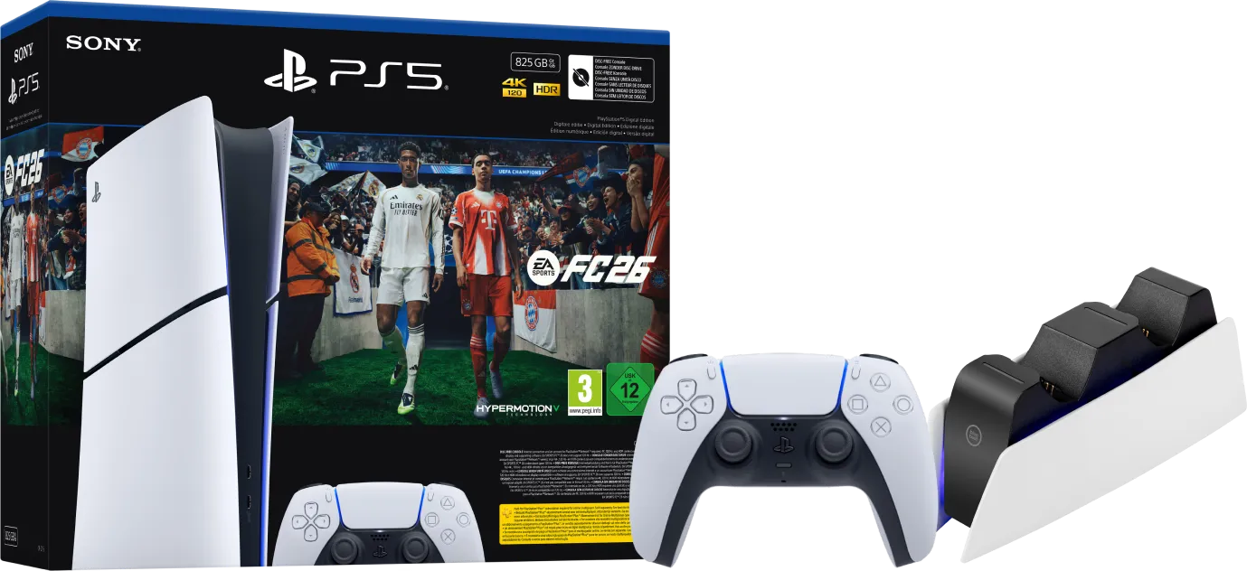 PlayStation 5 Slim Digital Edition + FC 26 + Extra Controller Wit + Oplaadstation