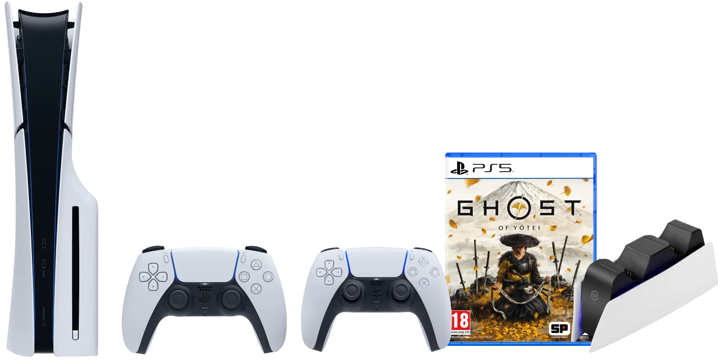 Verken het oude Japan met een volle accu in Ghost of Yotei en ga aan de slag met de PlayStation 5 Slim. Bij deze bundel krijg je een extra witte Sony DualSense controller meegeleverd. Ben je klaar met gamen? Dan leg je de DualSense controller in het oplaadstation. Zo speel je altijd met een volle accu tijdens je volgende game sessie. Met de PlayStation 5 Slim Disc Edition breng je jouw game ervaring naar een hoger niveau. Deze PlayStation 5 heeft een cd lade, waardoor je naast games ook blu-ray films afspeelt. De PS5 Slim is 30 procent kleiner dan zijn voorganger. Hierdoor neemt hij minder ruimte in op je bureau of naast je tv. Daarnaast heeft de Slim een opslag van 1 terabyte, waar de originele PlayStation 5 825 gigabyte opslagruimte heeft. Door de krachtige grafische processor in deze console game je in 4K resolutie met een maximale verversingssnelheid van 120 hertz. De SSD zorgt voor 20 keer snellere laadtijden in games dan op voorgaande PlayStation consoles. Speel je veel RPG of shooter games? Met 3D audio hoor je precies waar je tegenstanders vandaan komen. In-game bestuur jij jouw personage met de meegeleverde DualSense controller. Deze heeft voelbare feedback en trigger effecten, waardoor je niet alleen ziet en hoort, maar ook voelt wat er in je game gebeurt.