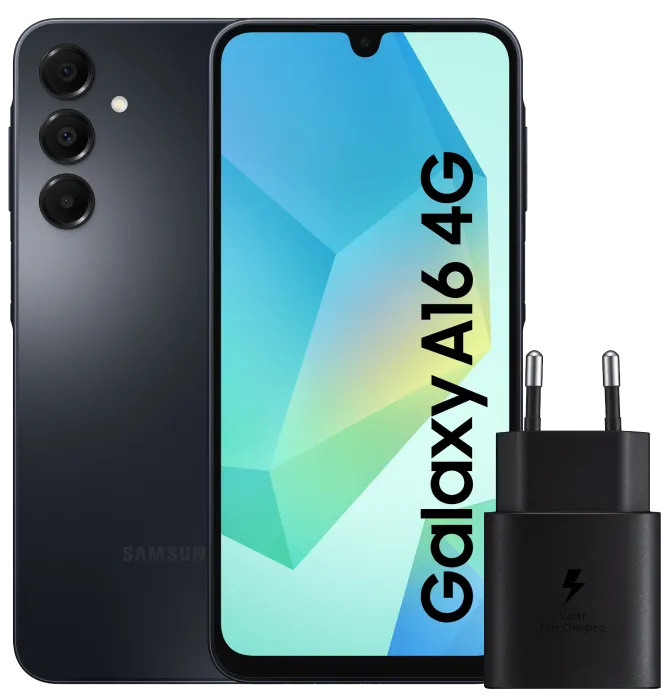Samsung Galaxy A16 128GB Zwart 4G + Samsung Oplader 25W Zwart